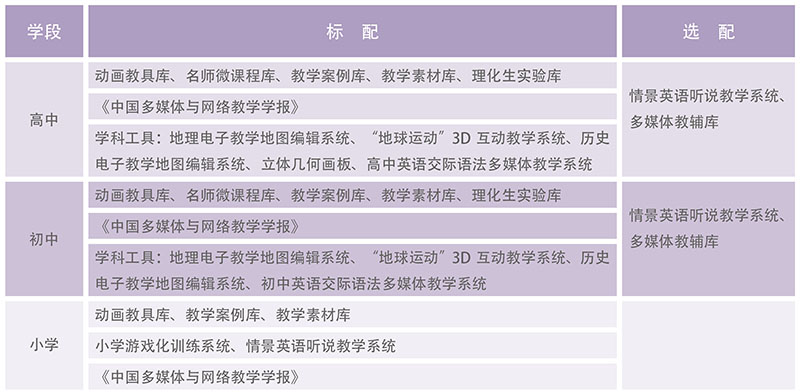 按照學段、學科配置優(yōu)質(zhì)教學資源和教學工具軟件。