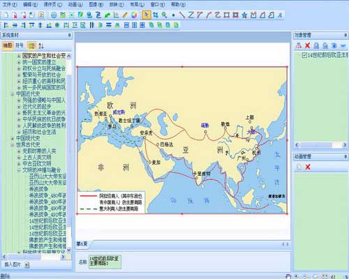 用于編輯、制作歷史教學(xué)課件的工具型軟件,提供了矢量教學(xué)圖庫和符號庫,并具有強(qiáng)大的地圖編輯和動畫制作功能,可滿足教師針對教學(xué)需要快速制作個性化教學(xué)課件的需要。
