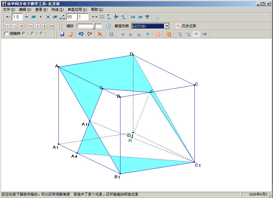 是數(shù)學(xué)立體幾何教學(xué)課件制作的工具軟件。該軟件功能豐富,包括創(chuàng)建空間中點(diǎn)、線、面,處理各種點(diǎn)線關(guān)系、線線關(guān)系、線面關(guān)系、面面關(guān)系、點(diǎn)面關(guān)系,并預(yù)設(shè)了各種幾何體,用戶還可根據(jù)自己的需要定制出特殊的幾何體。