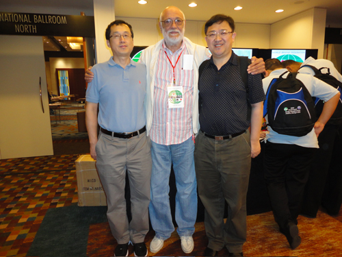俱樂部主席趙海波(右一)率隊參加美國亞特蘭大世界青年橋牌錦標賽,在賽場上與國際橋聯主席羅納先生合影 |