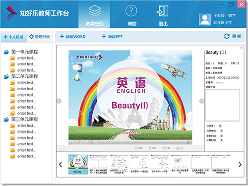 “知好樂課程資源中心V3.0”是符合教育部推進“三通兩平臺”——“優(yōu)質(zhì)資源班班通”、“網(wǎng)絡(luò)學(xué)習(xí)空間人人通”和“教育資源公共服務(wù)平臺”的建設(shè)與應(yīng)用要求,以促進中小學(xué)信息化教學(xué)資源應(yīng)用、提升教育教學(xué)質(zhì)量為目標,集學(xué)科課程配套資源、教師備授課、學(xué)生學(xué)習(xí)空間、資源共建共享及教研服務(wù)于一體的信息化教學(xué)資源建設(shè)與應(yīng)用服務(wù)平臺。