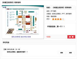 | 資源評價 教師可對非自己上傳的資源進行打分和評論,學(xué)??蓪⒋俗鳛橘Y源評價的一項依據(jù)。 |