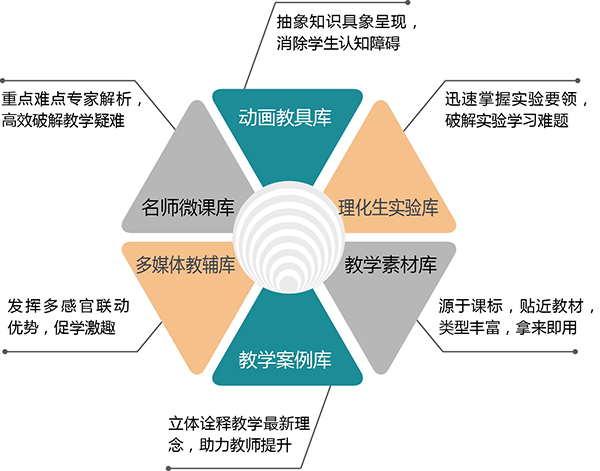 | 名師微課庫是針對學(xué)生學(xué)習(xí)的重點和難點,借助多媒體教學(xué)手段,由名師進行片段示范講解的系列微課程,包括重難點透析、經(jīng)典試題講解和中高考復(fù)習(xí)專題等內(nèi)容,包含高中共計1070小時、初中共計330小時。 | 動畫教具庫是以學(xué)科知識點或者教學(xué)主題為單位,針對突破教學(xué)難點和組織課堂交互活動的需求而設(shè)計,可以拿來即用的教學(xué)動畫,是多媒體教學(xué)必備的教學(xué)工具,包含高中4000多個動畫、初中2000多個動畫。 |