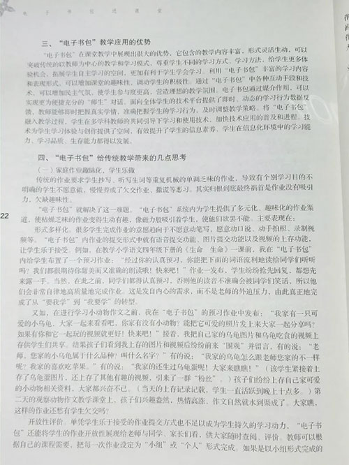 電子書包的優(yōu)勢與目前存在的問題這里并不能逐一分析,這兩天看了下這本書——廣州番禺區(qū)的《“電子書包”進課堂》,是一本非常不錯的書,值得研究。